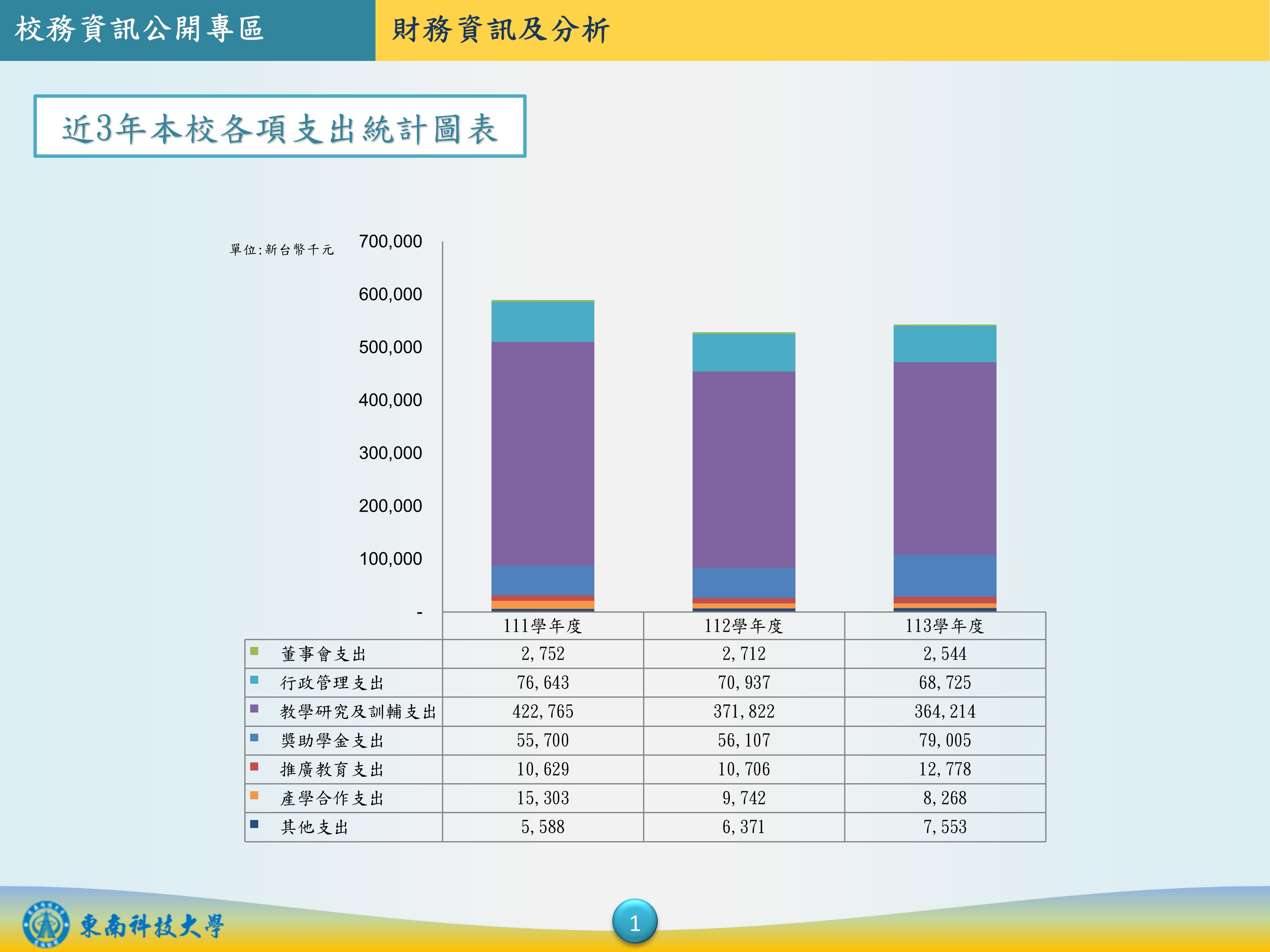 (1) 近3年學生人數(分大學部與研究所)與變動趨勢表