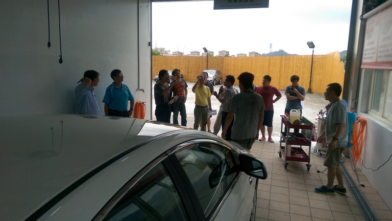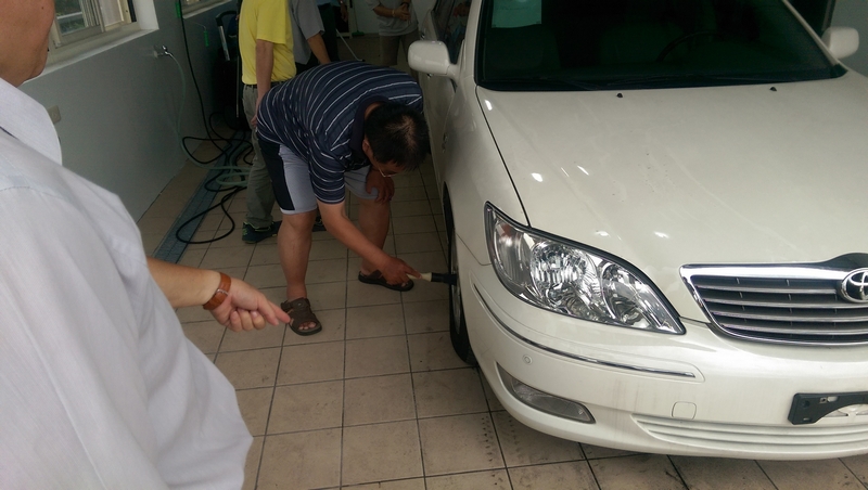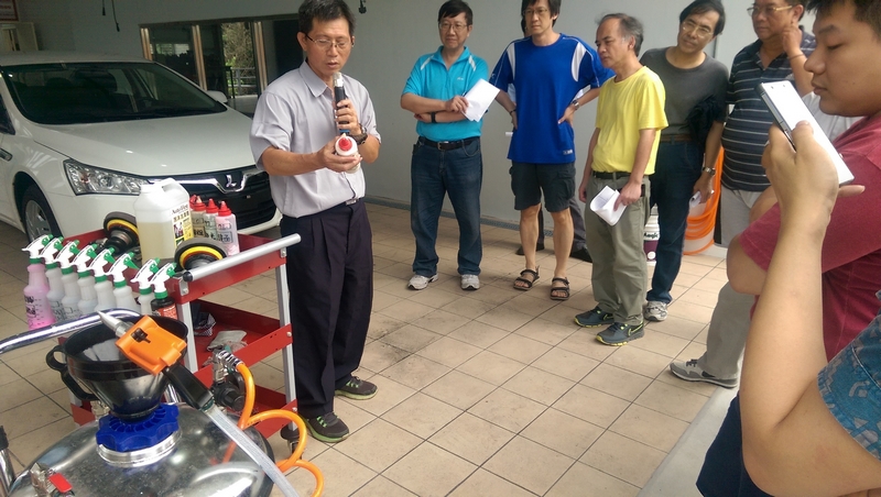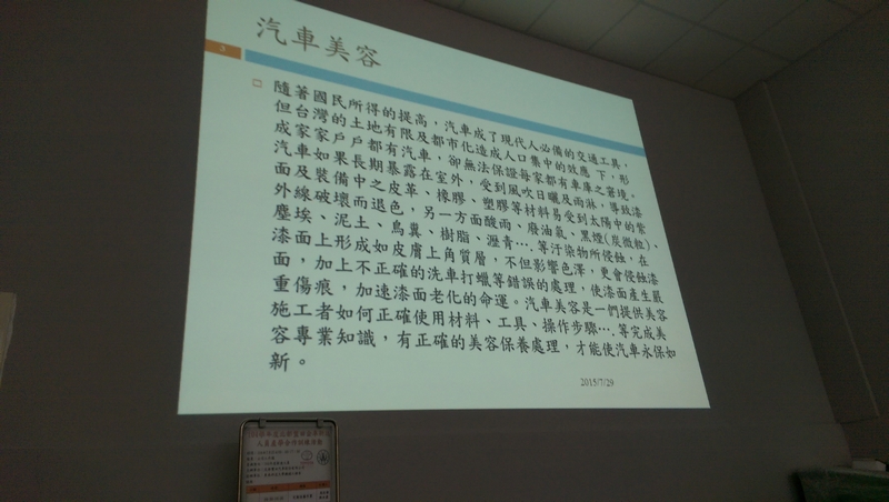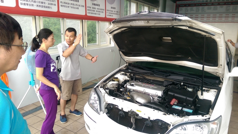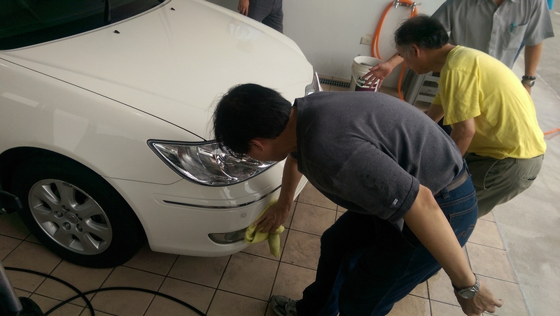 車輛美容研習: 1. 首日之初分析產業分布,了解人力需求及技術背景,示範坊間所流通之最新施作工法,作業時採三部實車分組演練,首日目標學員們達已高效之洗車作業能力(7分55秒洗車完畢並不能滴水) 2. 次日分就外觀美容及內裝養護深入施作,設定相關評要像及評分表準,建立符合本系車輛實務營運中心之作業準則,達成高效益成本控管能力與具備完善技術實力之師資。 活動成效 (1) 導入企業資源:導入企業教育資源,提升教學品質,以減少就業磨合期,即能有效提升就業競爭力 / 導入一冊節能車款訓練教材。 (2) 熟悉油電混合動力車輛之操作及使用,建立正確的使用觀念 / 熟習TOYOTA PRIUS及CAMRY HYBRID之油電系統操作。 (3) 產學合作進行油電混合動力車電力模組材料及散熱之研究,儲備研發能量 / 104年建立一件關於電力散熱模組之研究計畫。 (4) 導入車體美容技術,可開拓教學廣度,強化學生車輛工程相關技能,增加就業選擇 / 104學年度開設2門車輛美容課程。