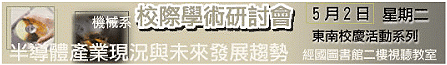 報名:即日起至四月三十日截止報名,完全免費,名額有限,歡迎參加。 聯絡:東南技術學院機械工程系 王俊程助理教授 電話:02-86625917分機26(FAX:02-86625919) EMail:jcw@toucan.tnit.edu.tw